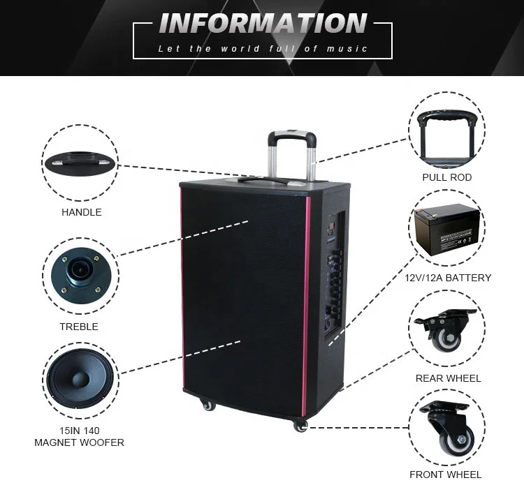 nombre del producto | Altavoz portátil de 15 pulgadas Bluetooths inalámbrico subwoofer recargable |