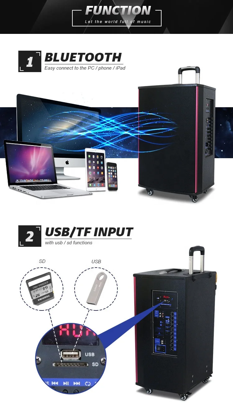Guangzhou 7swords Electronic Co., Ltd está localizado en el distrito de Baiyun de la ciudad de Guangzhou, provincia de Guangdong. Somos una empresa privada y somos Famoso en la producción de oradores. Estamos especializados en el altavoz de la carretilla, el altavoz de Bluetooth portátil, el altavoz de DJ, la ECT.El año, diseñamos muchos modelos nuevos y un molde privado por nuestro equipo de diseño. Modelos. Modelos son buenos comentarios de nuestro nuevo y viejo. Clientes. Asistimos a HK Exhibition todos los años. Nuestro sitio web: 7-electr.en.alibaba.com